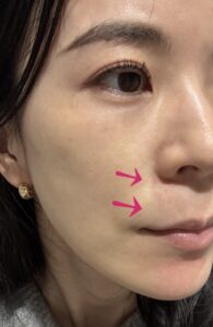頬は全体的に白くなり、塗っていない鼻の下との境界がはっきりわかります。